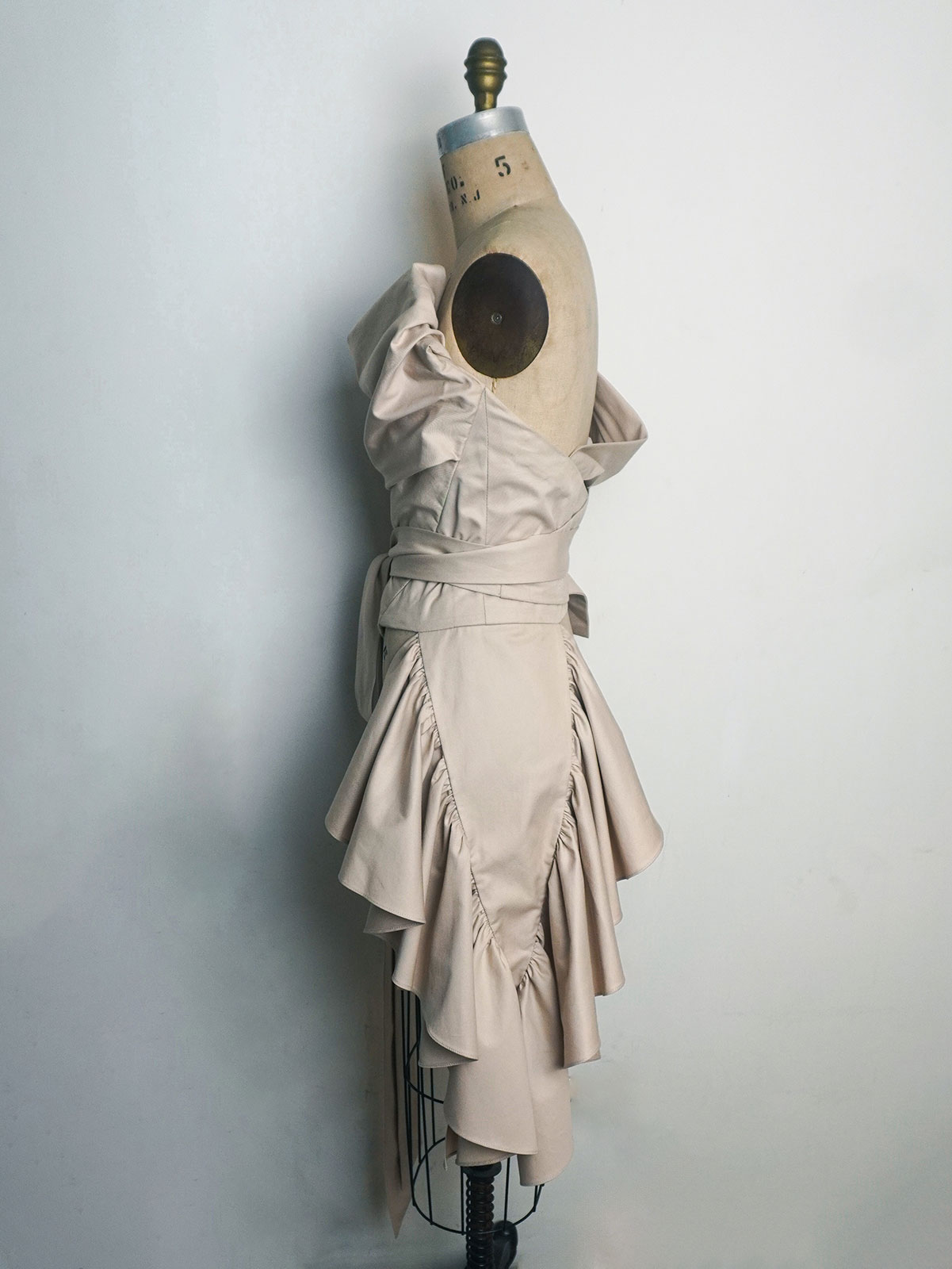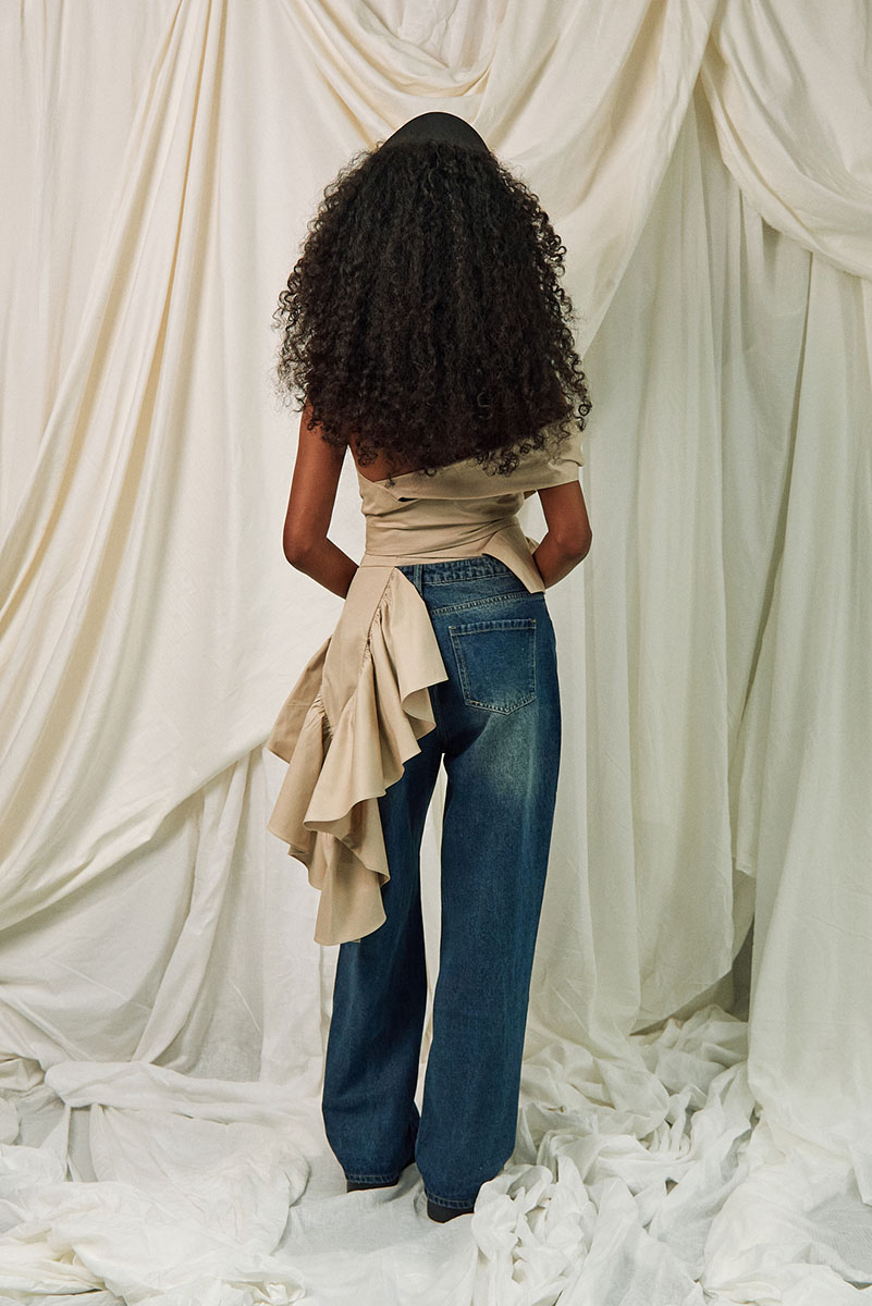 The Aliah Wrap Corset is a versatile piece with a detachable ruffle on the side that can be added or removed based on how dressy you would want your outfit to be. Although photographed with jeans, the wrap corset bodice in Japanese cotton twill can also be worn with skirts for a more formal look.