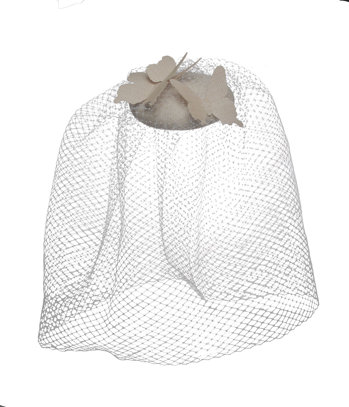 Hand blocked buckram fascinator covered and trimmed using hand woven T’nalak by the T’boli in South Cotobato, with long birdcage veil.