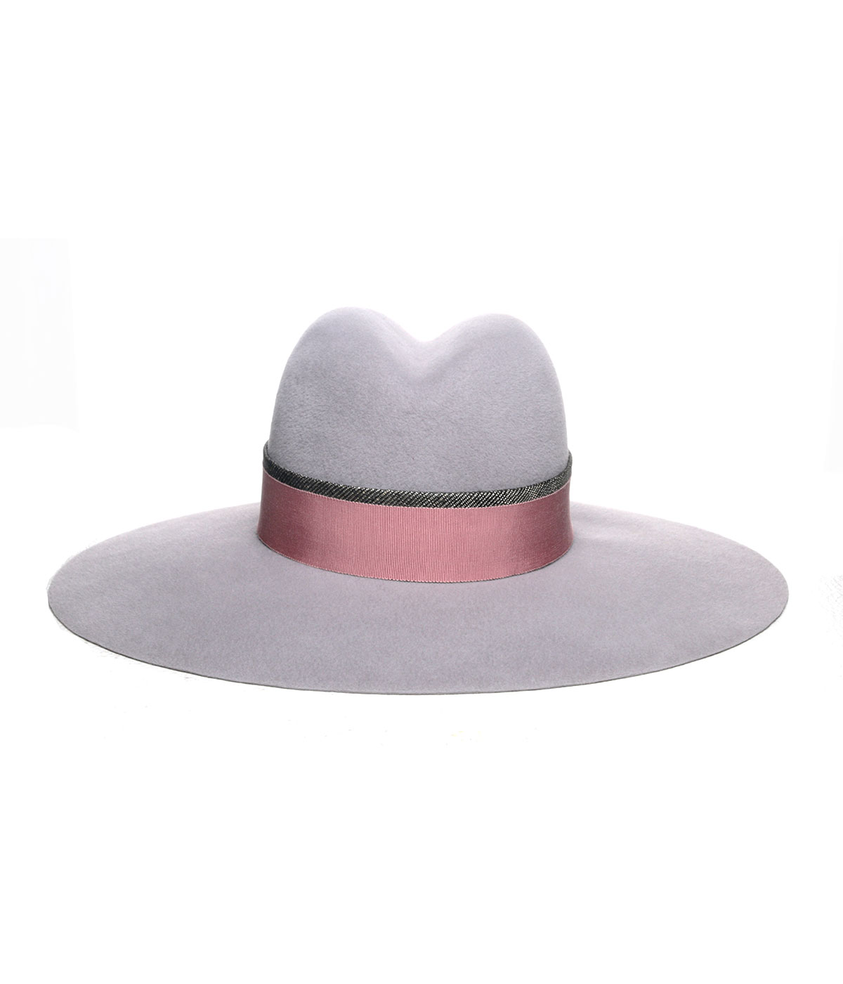Hand blocked wool felt hat trimmed with handwoven T’nalak and grosgrain ribbon.